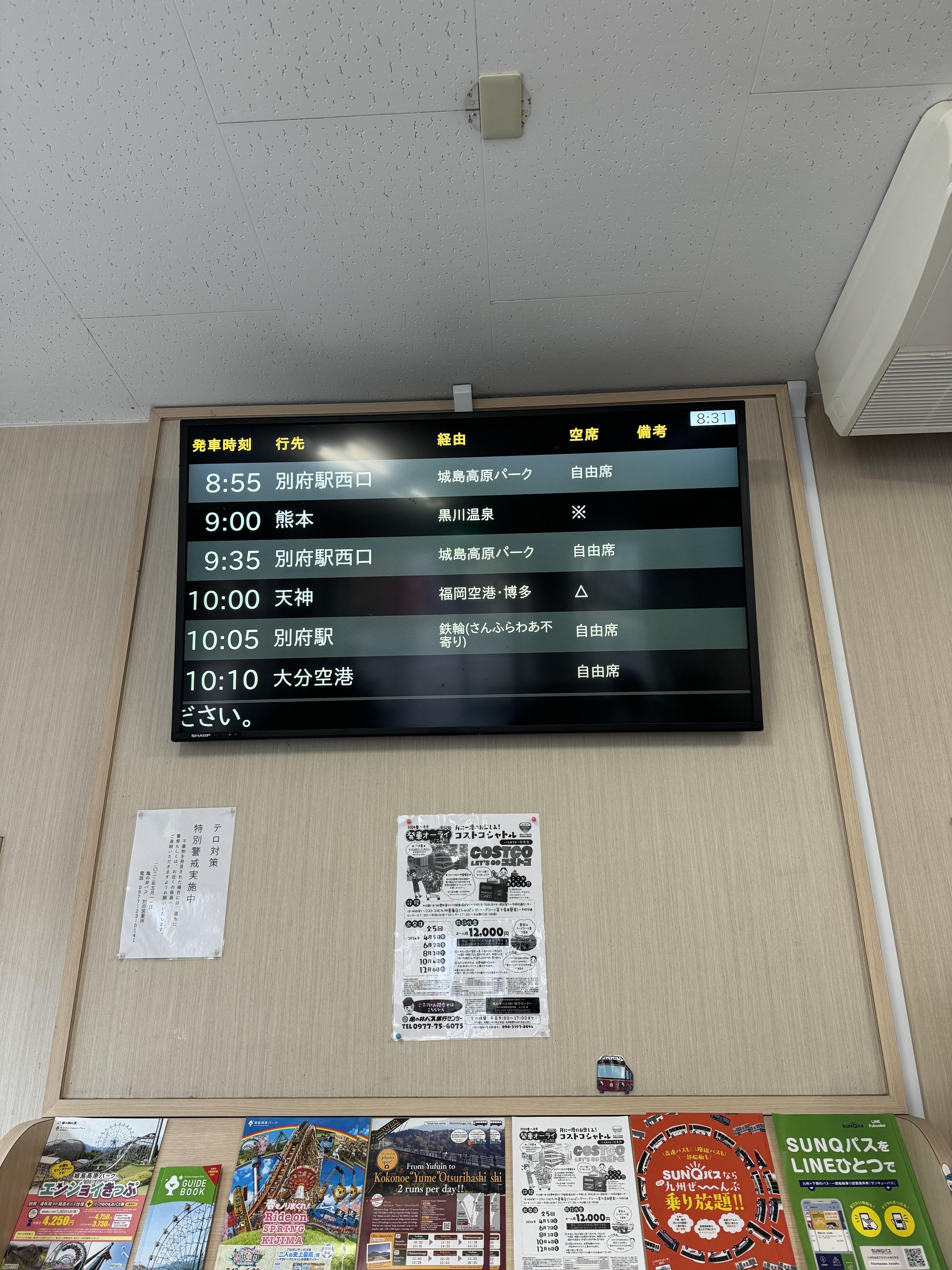 유후인에서 9시에 출발하는 첫차버스